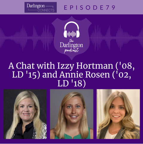 In this episode, Becca Wood, director of events and engagement in the Advancement Office, chats with Izzy Hortman ('08, LD '15) and Annie Rosen ('02, LD '18) about their Darlington experience, their respective careers and their work as co-chairs on the Alumni Council Darlington Connects committee.