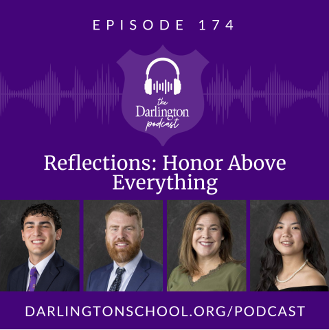 In this episode, Student Body President Atlas Kosedag talks with Upper School Learning Specialist Justin Bruce, Upper School science teacher Jaclyn Haynes, and senior Honor Council President Anna Nguyen about honor at Darlington, from our motto that says "Honor Above Everything," to how students and faculty strive to exhibit honor in everything they do, from the classroom to the athletic fields to the arts and more.