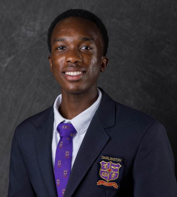 Kimani has taken five Honors and eight AP courses at Darlington. He is currently enrolled in six AP courses. Kimani serves as president of the Discipline Committee, head boarding prefect of Moser House, and is a member of the Dar Tech Team, Servant Leadership Committee, Tiger Tutors, and varsity cross country and track and field teams.