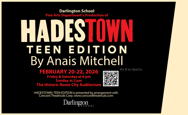 The haunting melodies of hope and the heavy rhythm of industry take center stage as Darlington’s fine arts department and The Darlington Players present the Tony Award-winning musical "Hadestown." Written by Anaïs Mitchell, this acclaimed reimagining of ancient Greek mythology will come to life Feb. 20-22 downtown at the Historic Rome City Auditorium. Showtimes are 6 p.m. on Friday and Saturday and 2 p.m. on Sunday.
