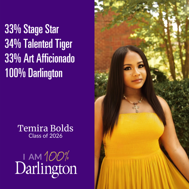 A Darlington student is made up of many things. None of which is average. We help our students develop their interests, passions and pursuits, because we believe every individual has something to contribute. We also believe that only when you're 100% you, are you 100% Darlington.