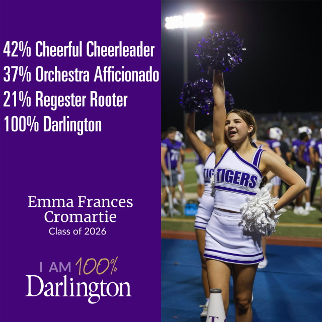 A Darlington student is made up of many things. None of which is average. We help our students develop their interests, passions and pursuits, because we believe every individual has something to contribute. We also believe that only when you're 100% you, are you 100% Darlington.