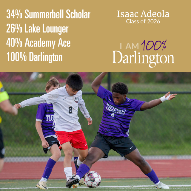A Darlington student is made up of many things. None of which is average. We help our students develop their interests, passions and pursuits, because we believe every individual has something to contribute. We also believe that only when you're 100% you, are you 100% Darlington.