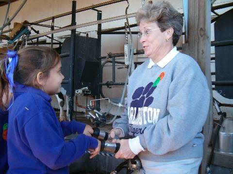 We boarded buses and headed to Canton. Once at the dairy we had a tour of the processing plant, went on a hayride around the far, watched Jake (an Australian Shepherd)herd the cows, fed young calves, sample the milk, had a picnic and last BUT not least -- the Corn Maze!