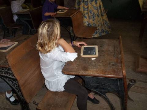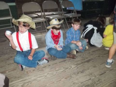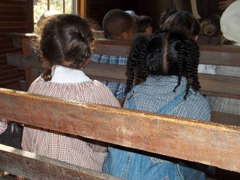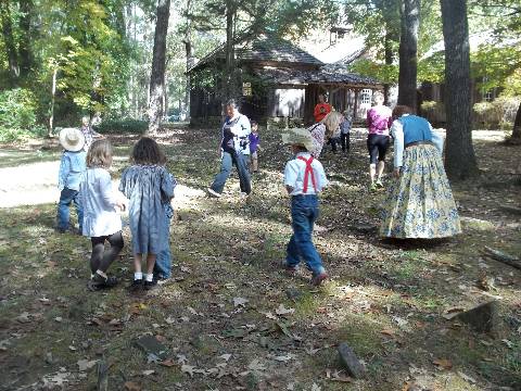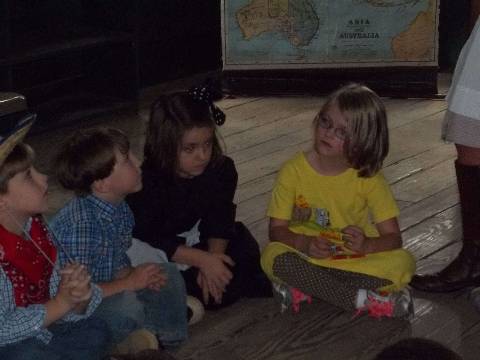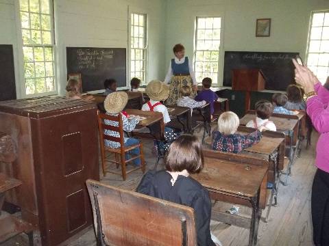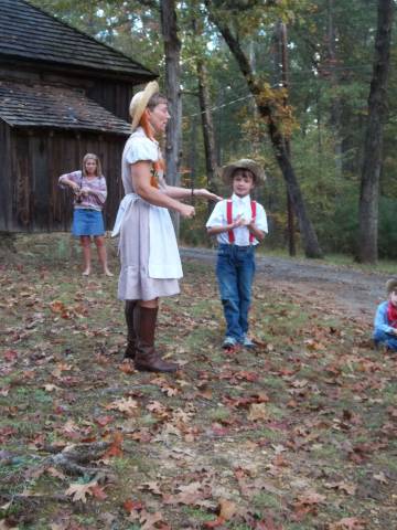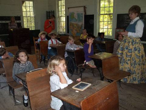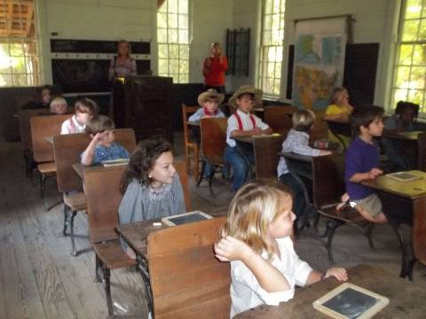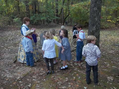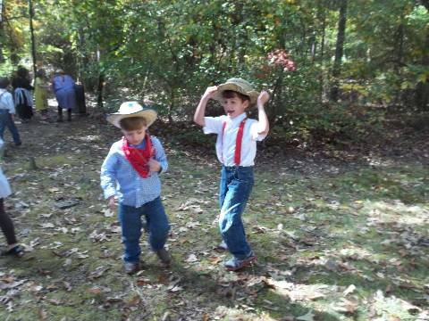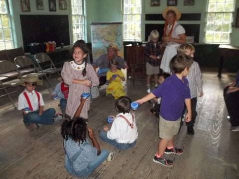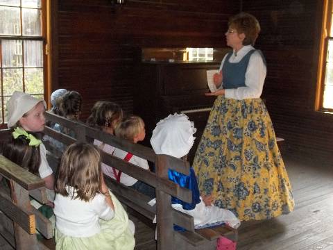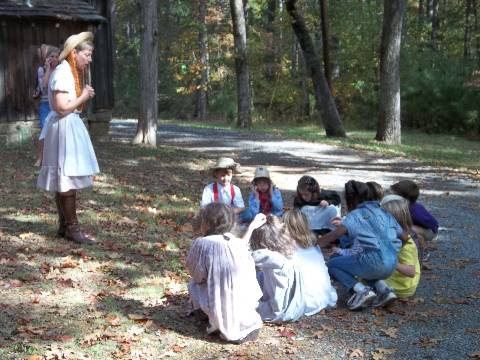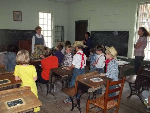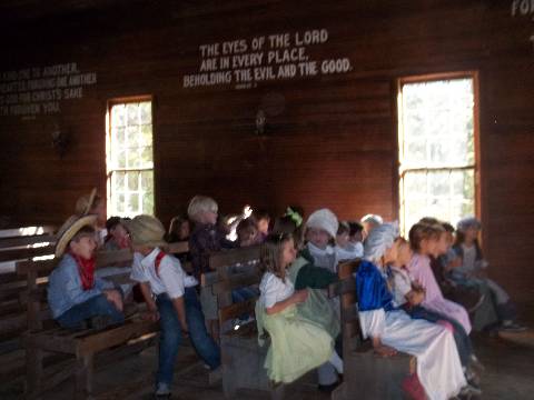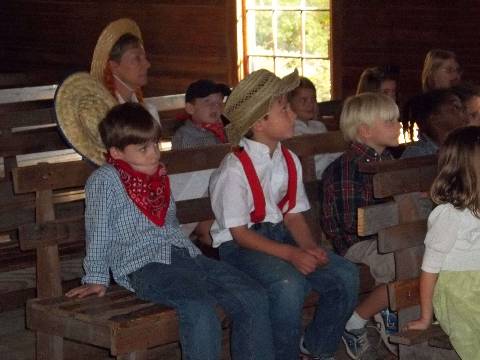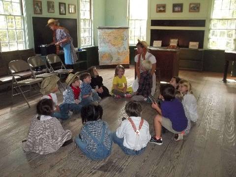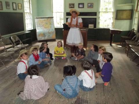 Kindergarteners experienced a day in the life of a student that went to Possum Trot School, located on Berry College's campus. They heard the school bell ring and went to the chapel, had a lesson in the one room school house, made butter from cream, played old time games and enjoyed lunch on the lawn. What a great day!