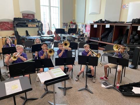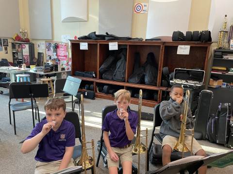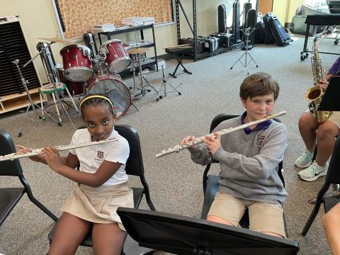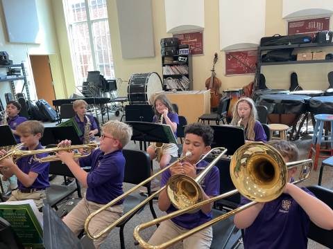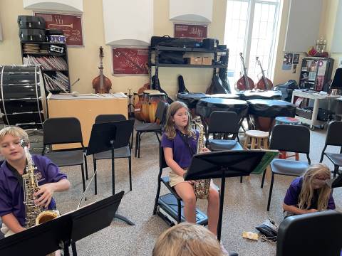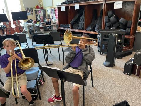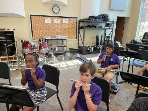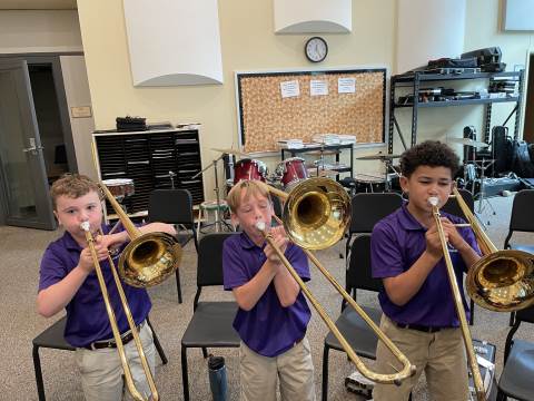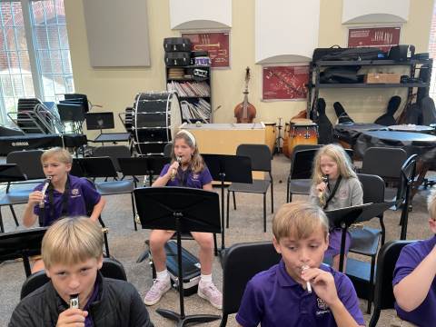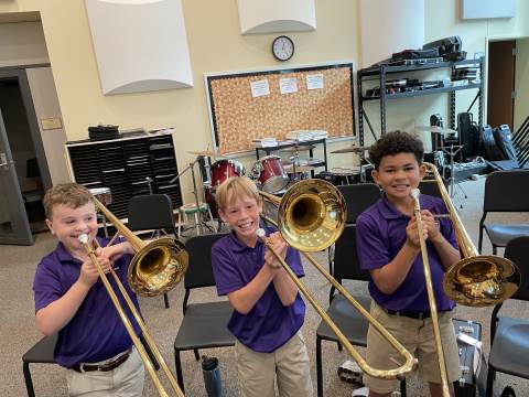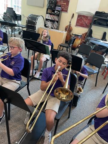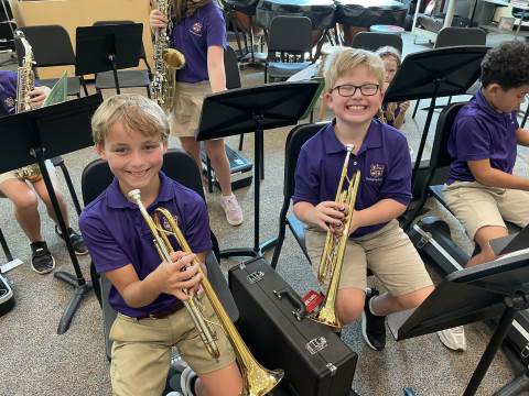 The youngest members of Darlington's band program have received their new instruments! This year's fourth grade band truly embraces our Fine Arts season of Discovery as they take their very first steps in the journey of learning to play a band instrument. After completing Pre-Instrument Training Camp, they are now opening their cases and doing so much of the work that is required to start playing. These musicians have learned to assemble the instruments, hold them, sit with good posture, use good air support, create a tone on the mouthpiece and instrument, a few starting notes, and they continue to master reading rhythms, pitches, and note names. The fourth grade band is making some wonderful sounds that will no doubt only get better! We are proud of these talented Tigers for taking on the challenge of becoming an instrumental performer.