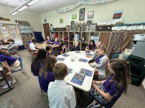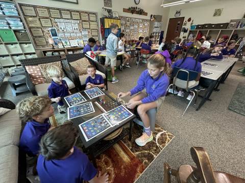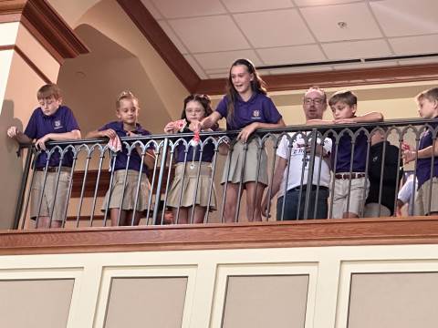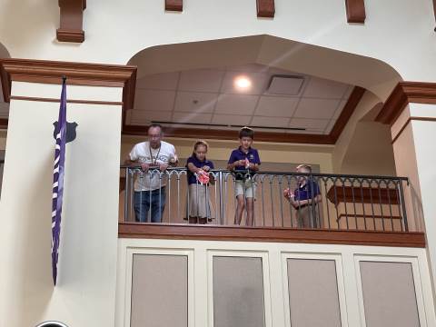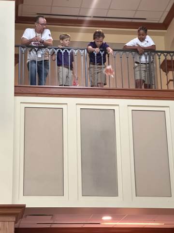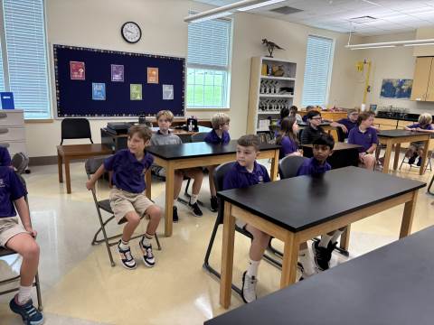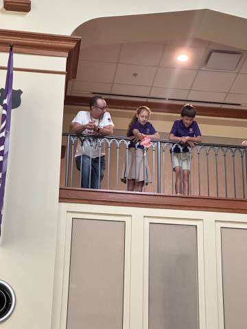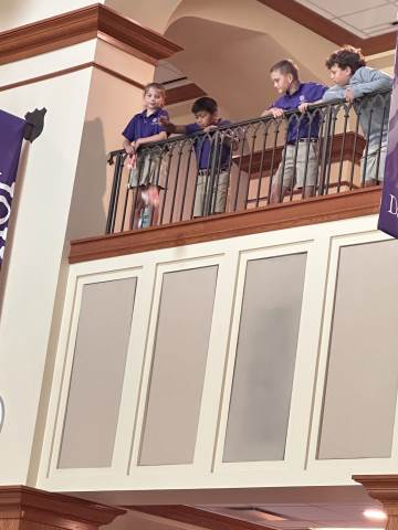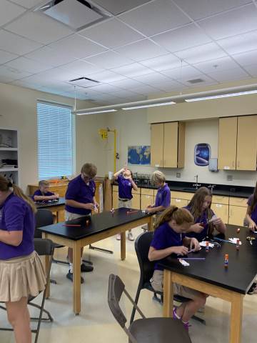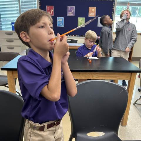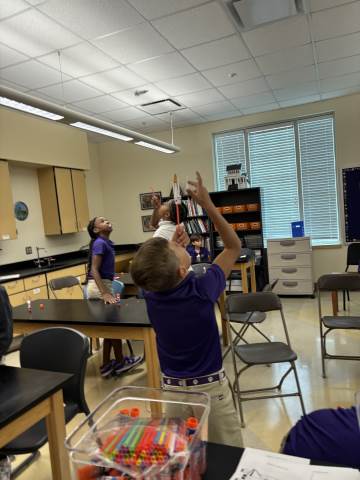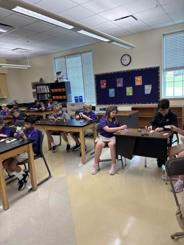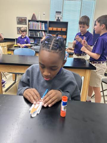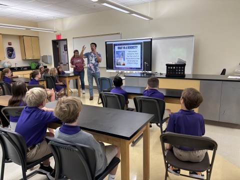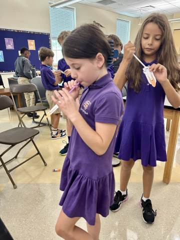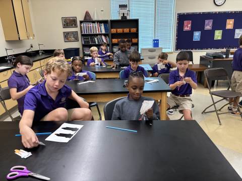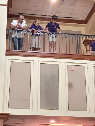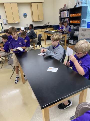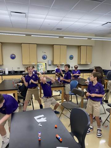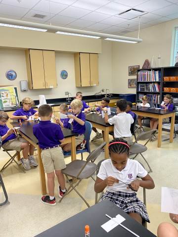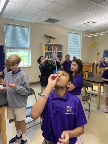 Third, fourth, and fifth grades kicked off the year with an exciting space-themed Exploratory day. The day included dropping parachutes toward targets, making and launching straw rockets, outer space themed bingo, and sponge-painting galaxies. U.S. Navy pilot and Darlington dad Commander Robert Hortman ('99, LD '18) was our guest speaker. He discussed how parachutes work and his experience as a pilot. The day ended with awesome rocket launches and a space themed snack - Rocket Pops!