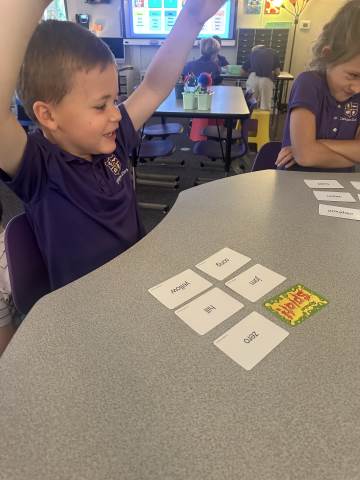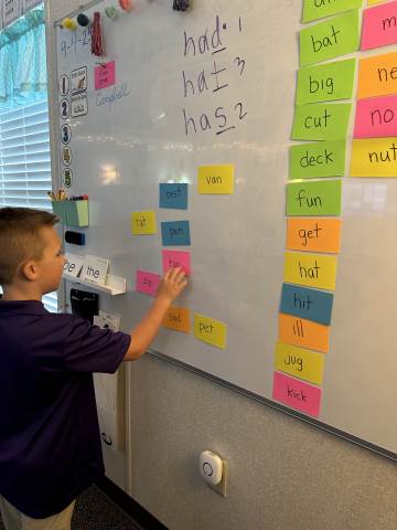 Literacy in first grade so far has been a mix of hands on centers, writing, reading and spelling. Each day students have the opportunity to work with a teacher and in small groups. This allows every child to get the instruction and practice they need. Literacy is usually a favorite time of day for our Pirates because of the variety of engaging activities to choose from.