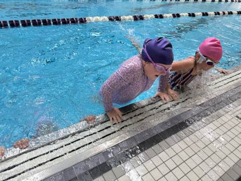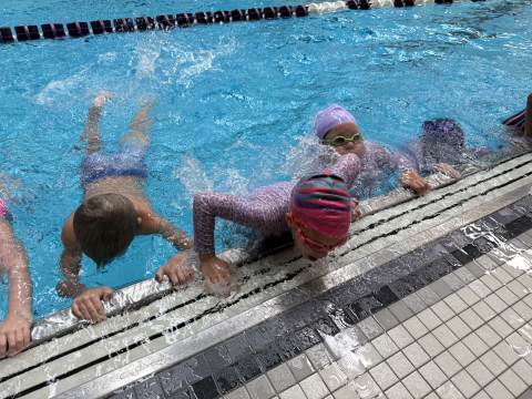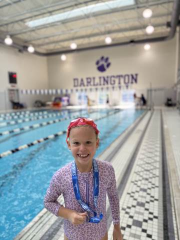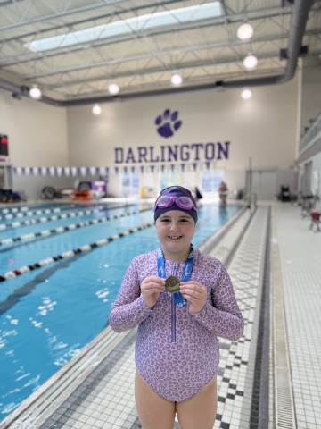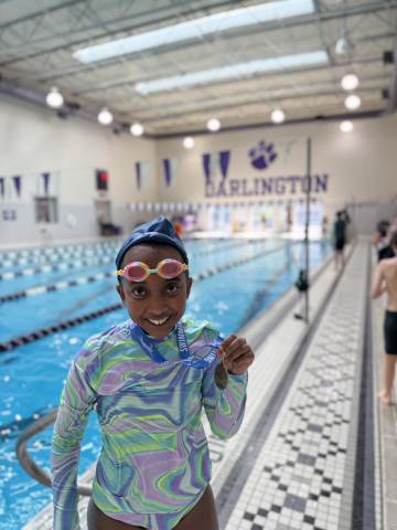 Our first through fifth grade swimmers earned their first medals for completing their first yards in the pool! Beyond learning strokes, Swim Club is all about building teamwork in an individual sport and, most importantly, having fun in the water. The program is led by Coach Shiera together with dedicated members of the varsity swim team, who serve as instructors and role models for our youngest Tigers.