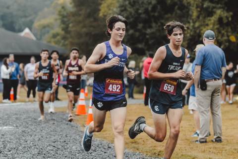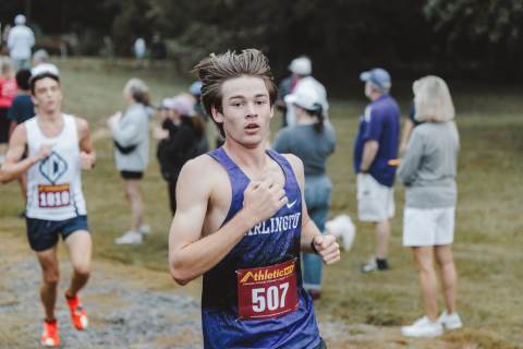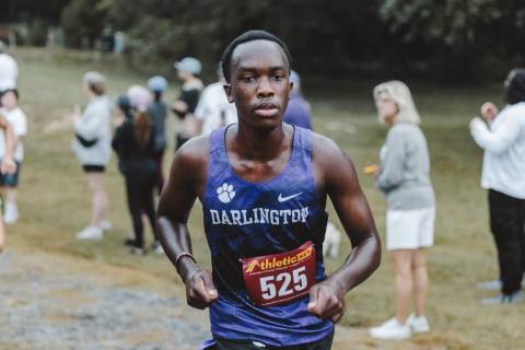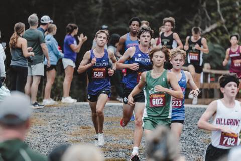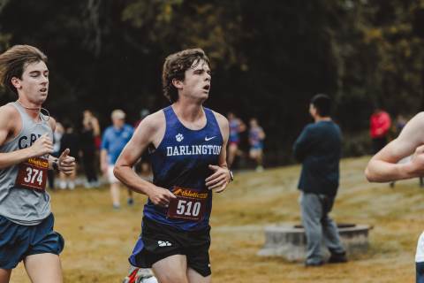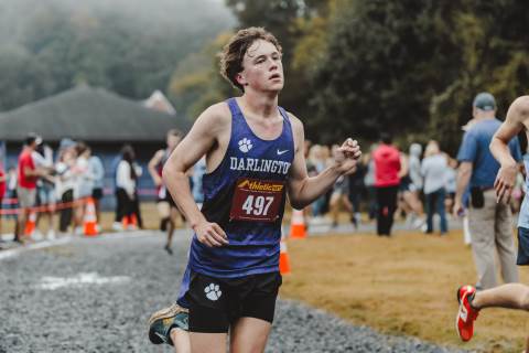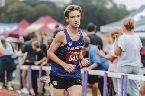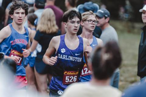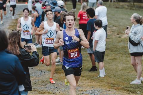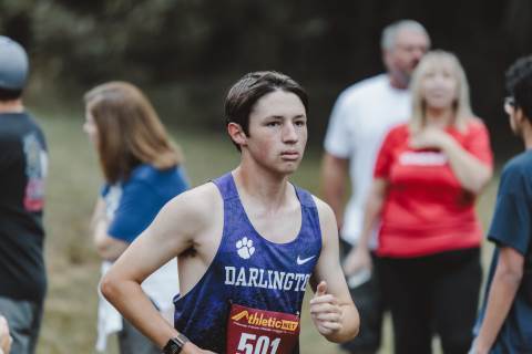 The varsity boys' cross country team earns third place at the Darlington Festival.