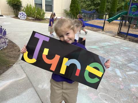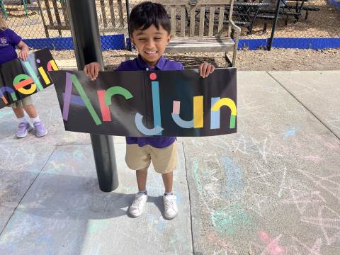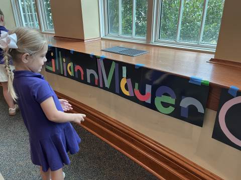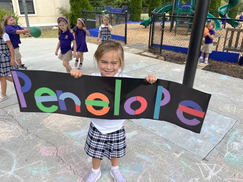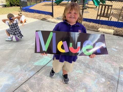 We have been learning all about our names, what letters our friends' names begin with, how many syllables are in our names and more. We made name banners to celebrate our names!