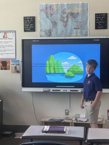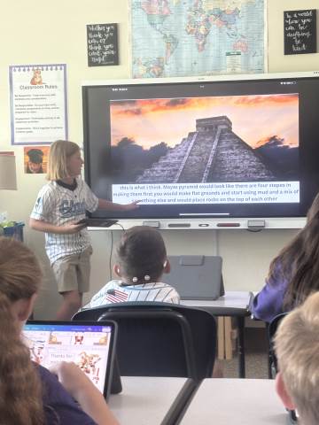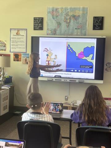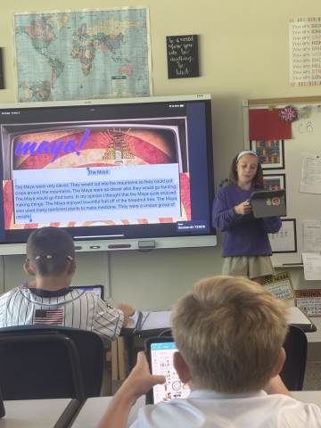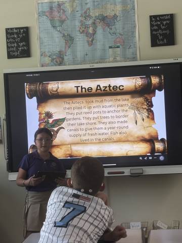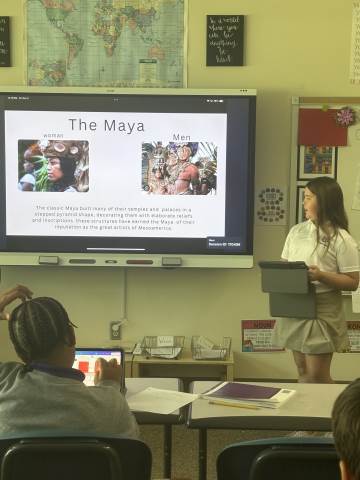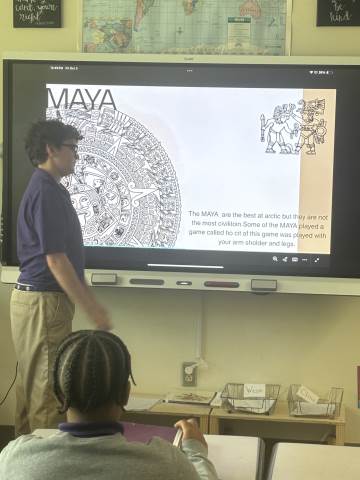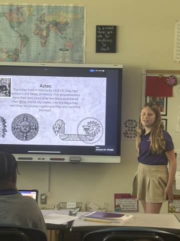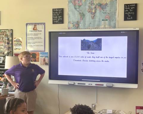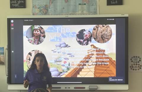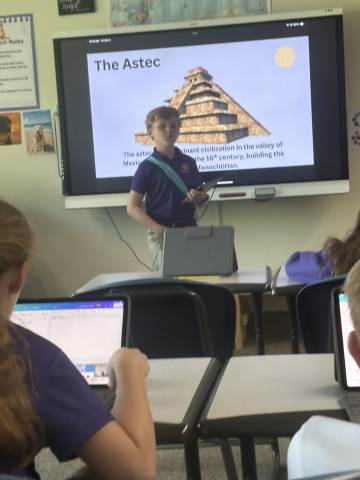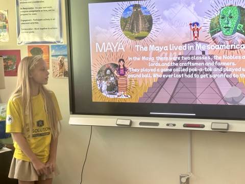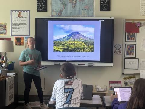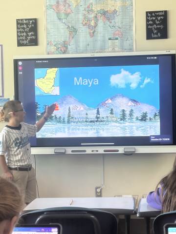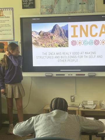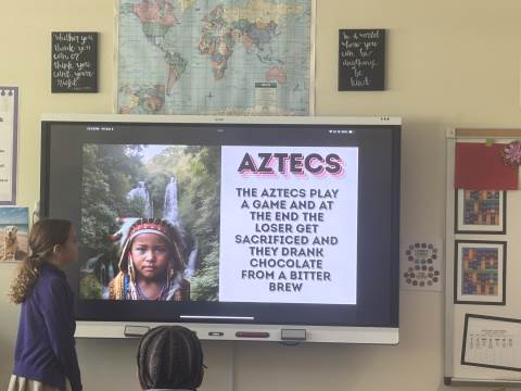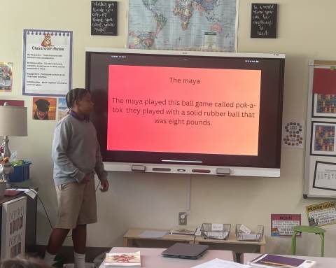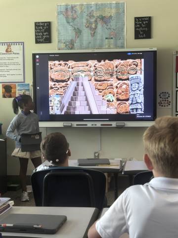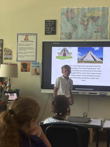 Fifth-graders wrapped up their unit on the Maya, Aztec, and Inca civilizations by researching, creating presentations, and sharing their insights with the class, demonstrating strong understanding and communication skills.