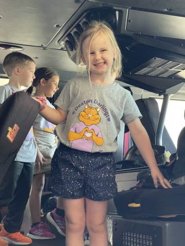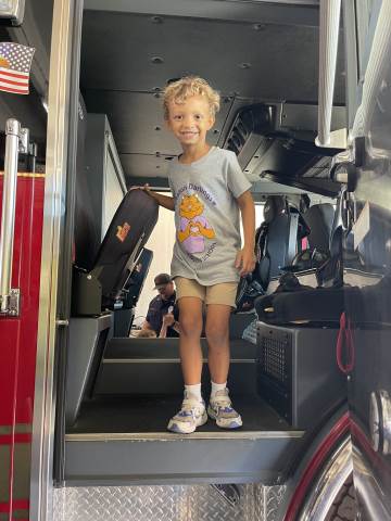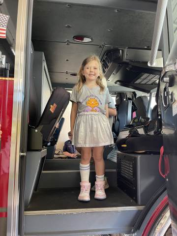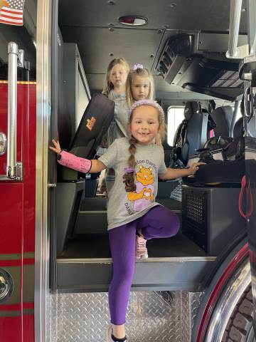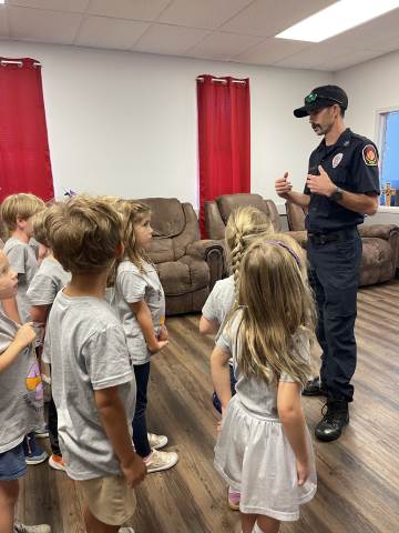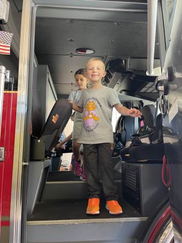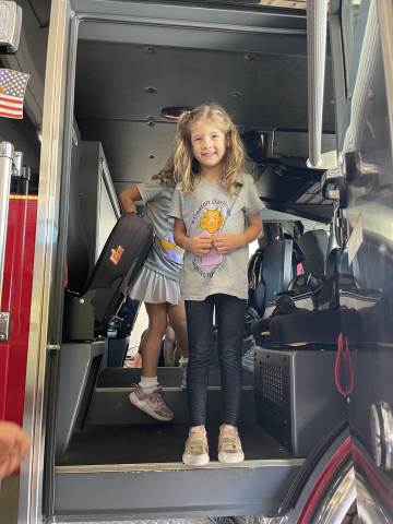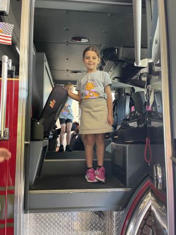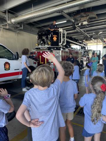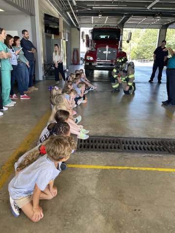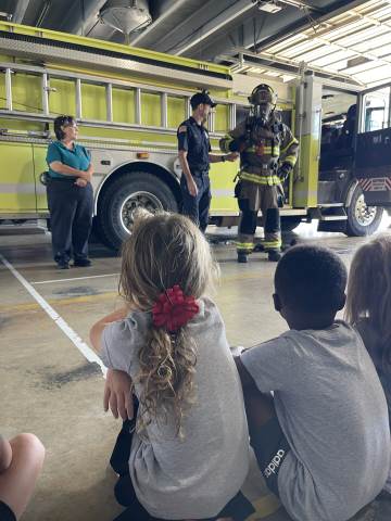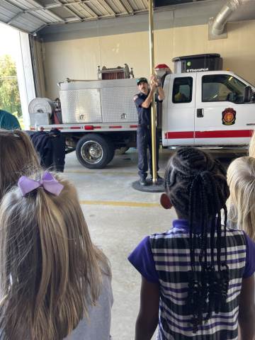 Kindergarten students culminated their study of fire safety with a visit to Rome Fire Department Station #1. We learned many safety tips, such as "stay low and go" if there is a fire. We got to see where the fire fighters sleep, study and eat. The highlight of our trip was getting into the fire truck and watching the firefighters slide down the pole!