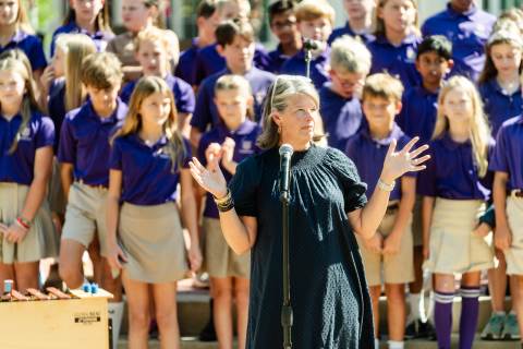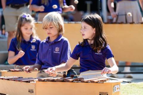 The lower grades band, strings, and general music classes perform their fall concert for friends and family in the Johnson-Drummond Amphitheatre.