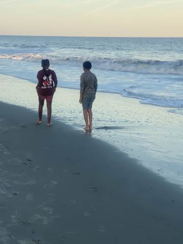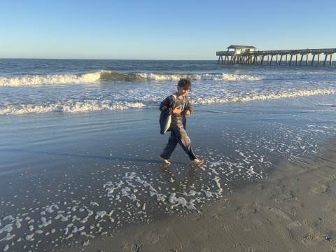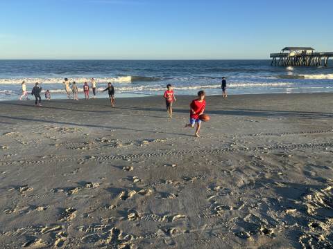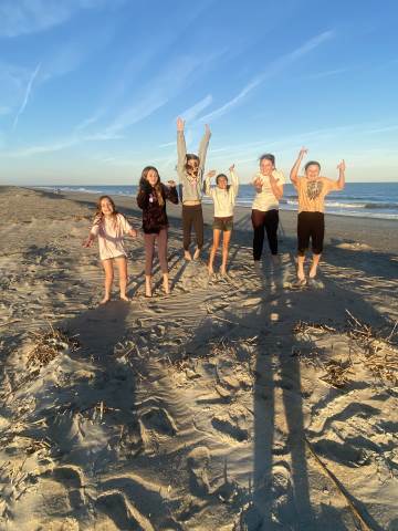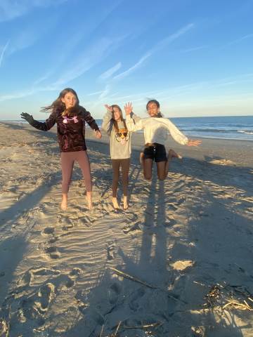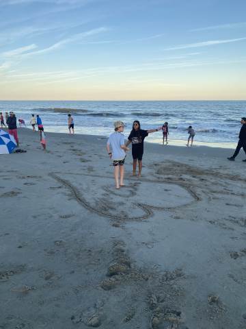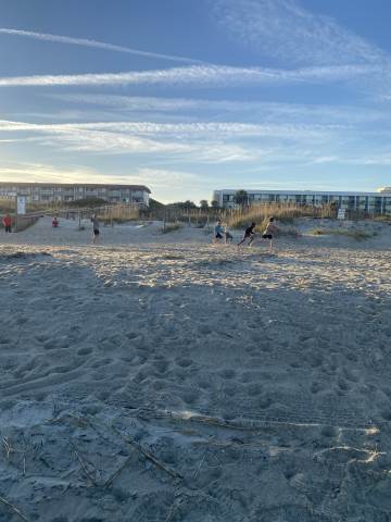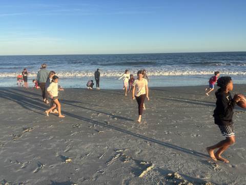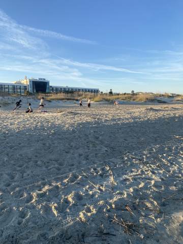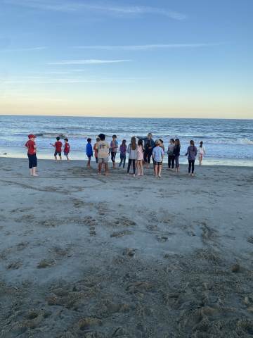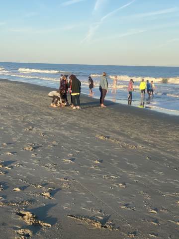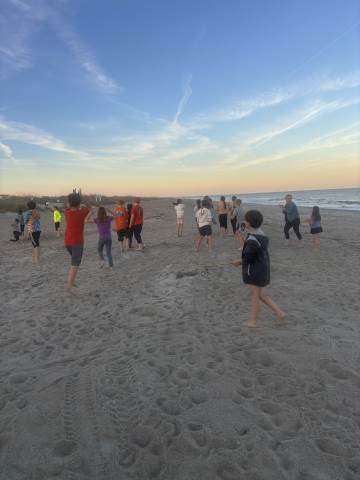 The students had fun playing on the beach at Tybee Island as a class after a day full of learning at Skidaway.