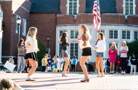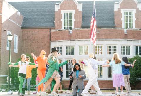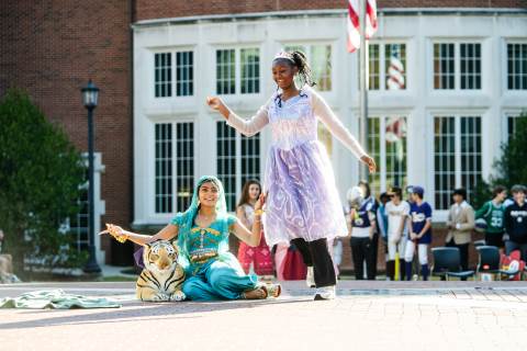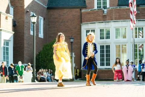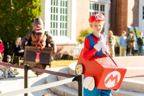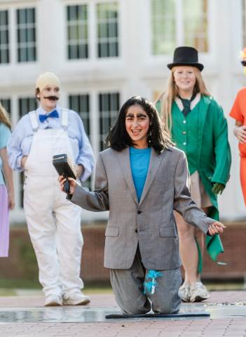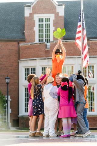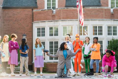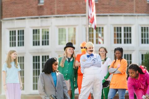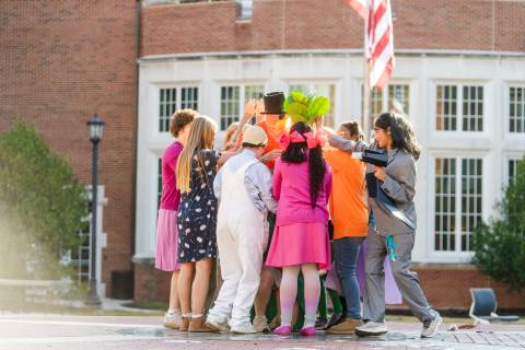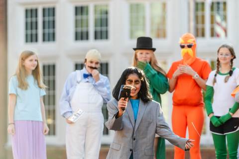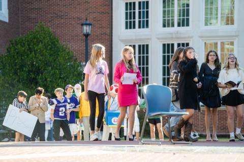 Middle grades advisory groups perform their Halloween skits for family and friends at the Thatcher Halloween celebration.