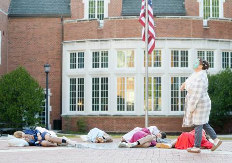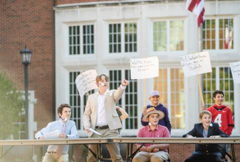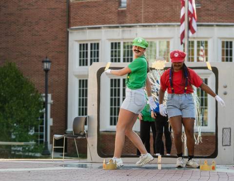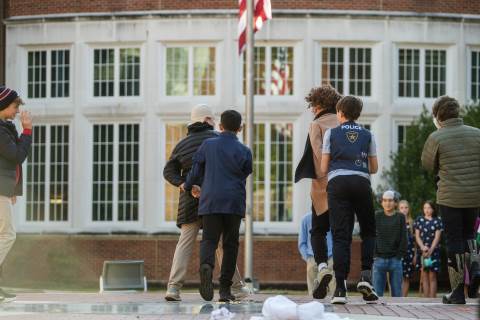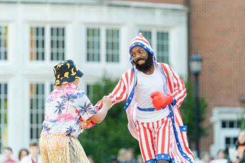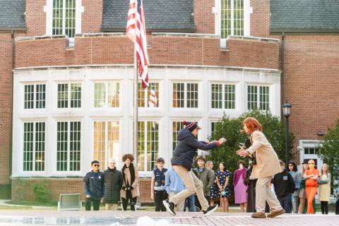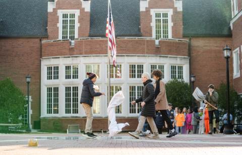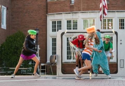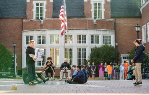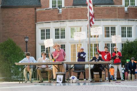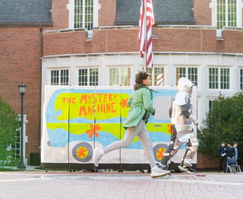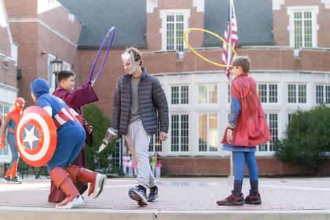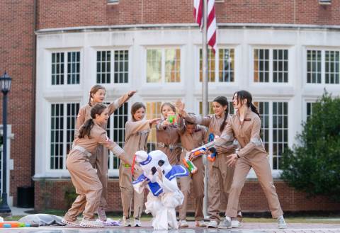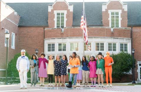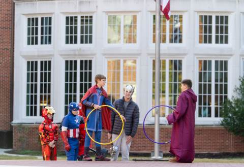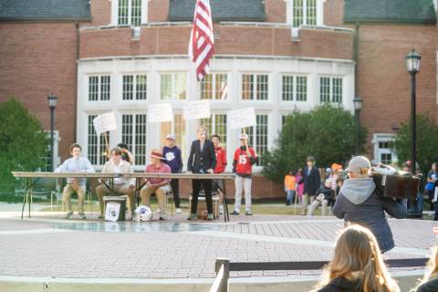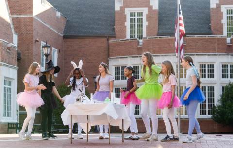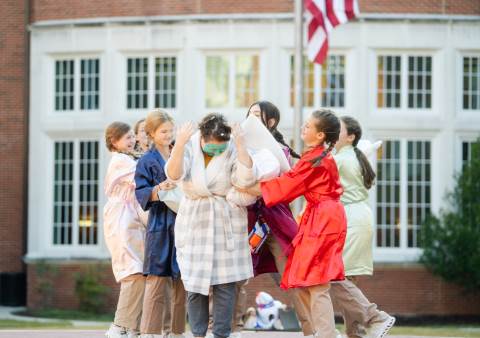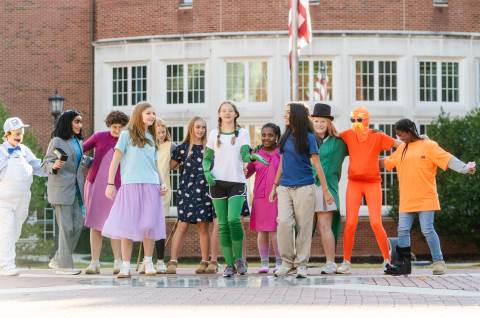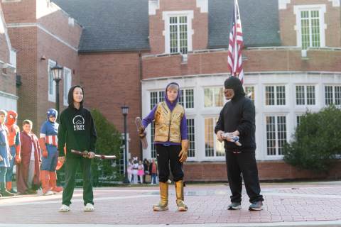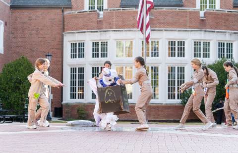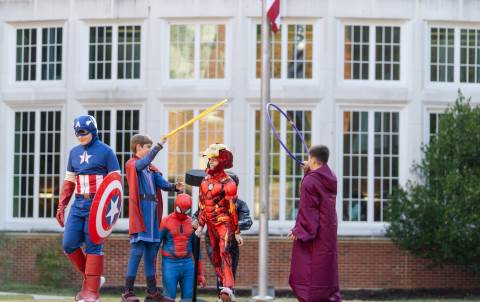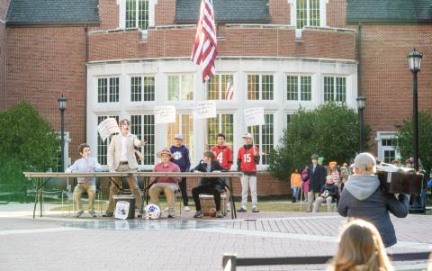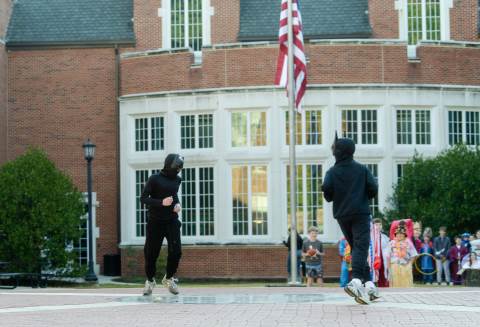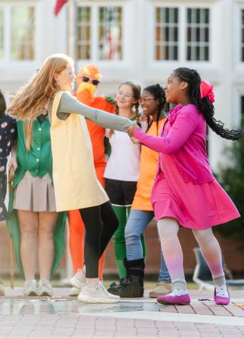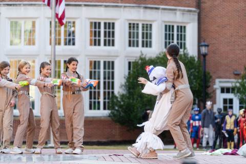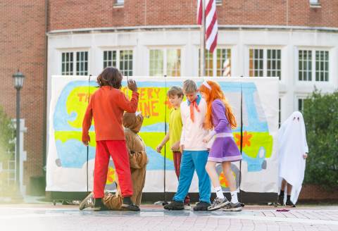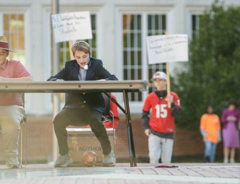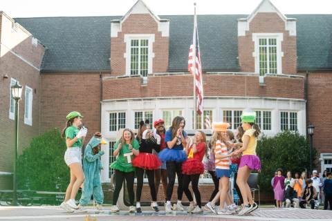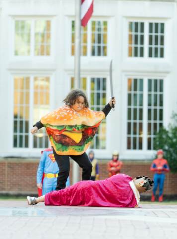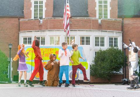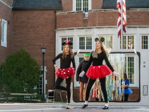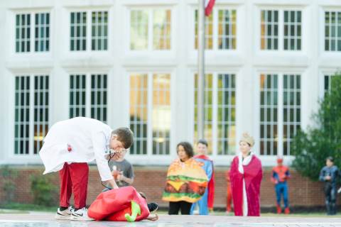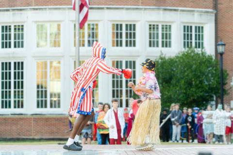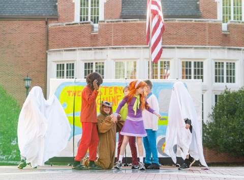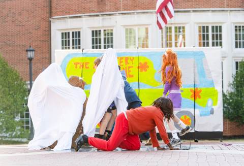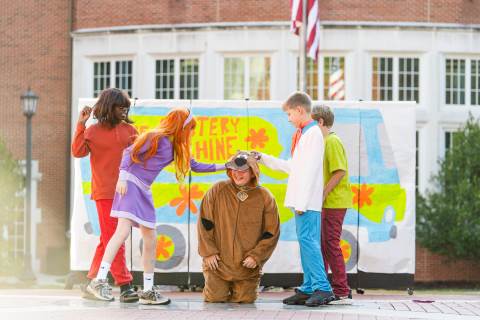 Middle grades advisory groups perform their Halloween skits for family and friends at the Thatcher Halloween celebration.