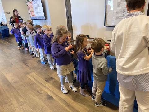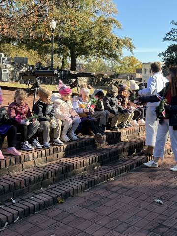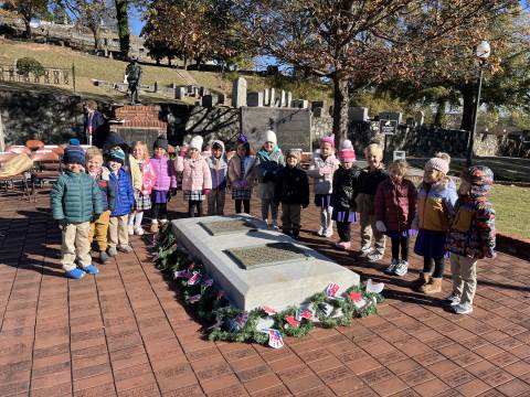 Pre-K enjoyed a great morning celebrating our veterans. We first stopped by Myrtle Hill to perform a wreath laying ceremony at Veterans Plaza. Then we waved flags and thanked the veterans in the parade on Broad Street. Finally, we went to The Spires to spread some joy and make patriotic bracelets with the residents in Magnolia Place. We also played Thanksgiving memory with our new friends. What a great day celebrating our country and the freedoms that we often take for granted!
