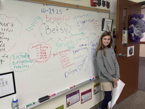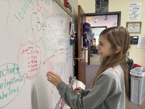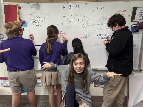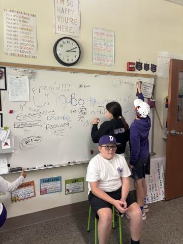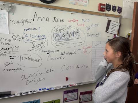 Fifth-graders enthusiastically revisit adjectives while exploring the thoughtful ways their peers express admiration.