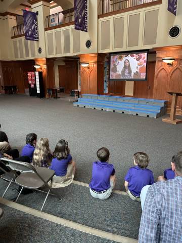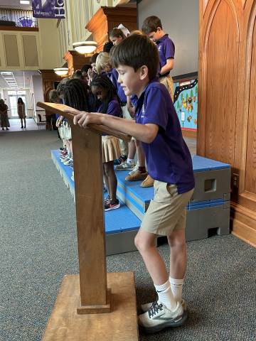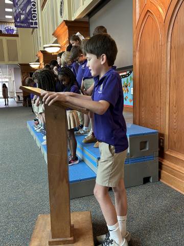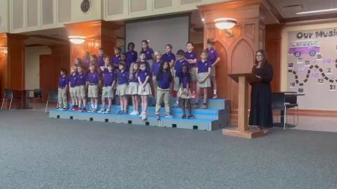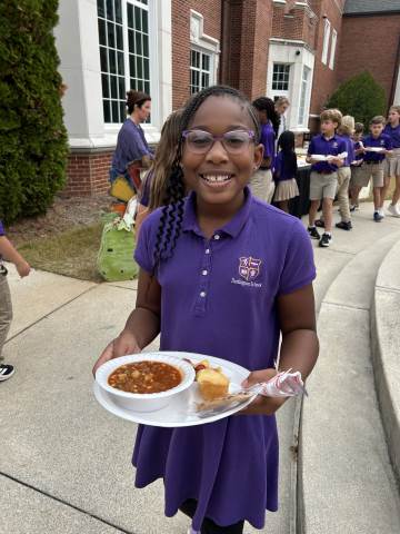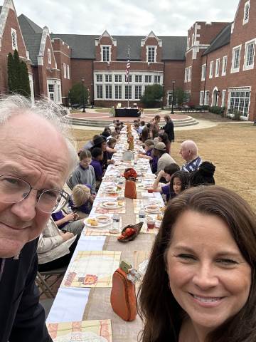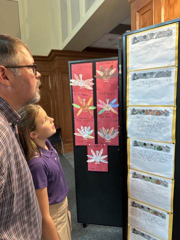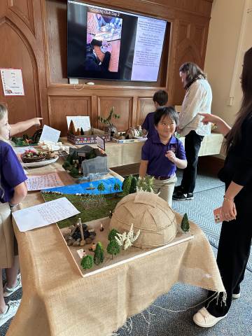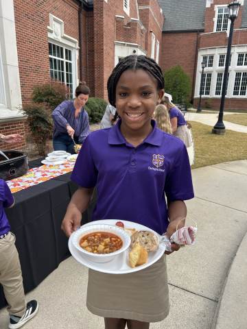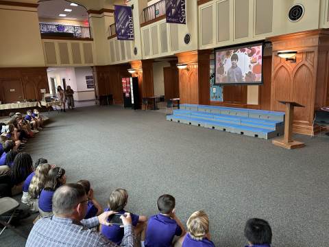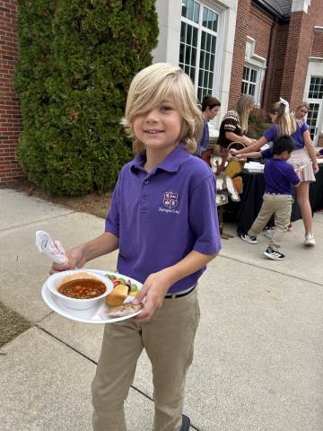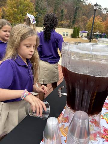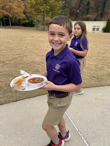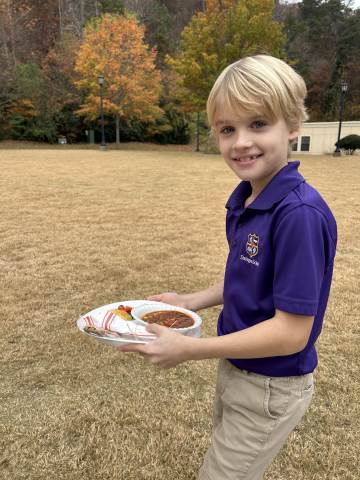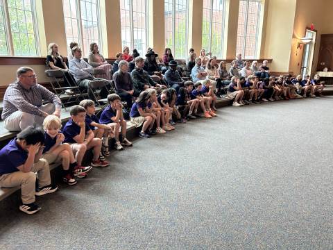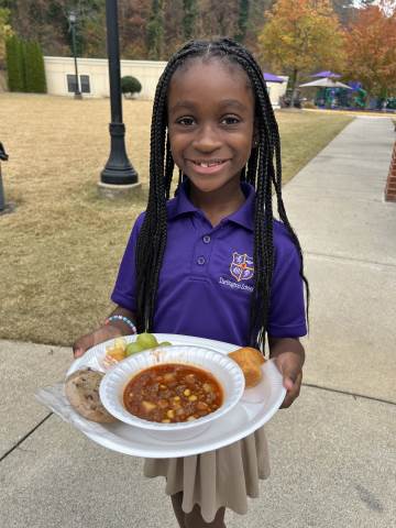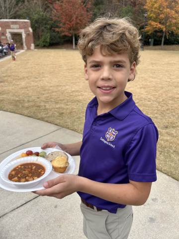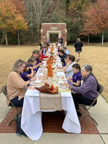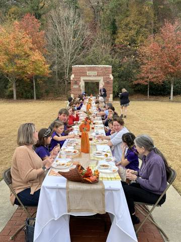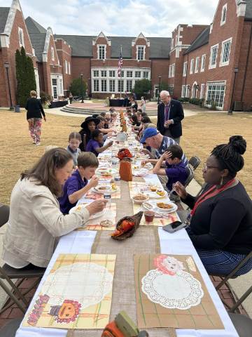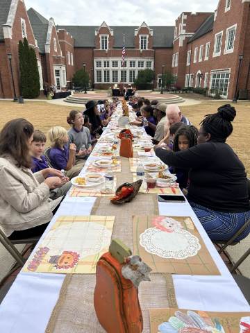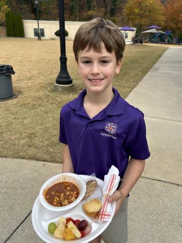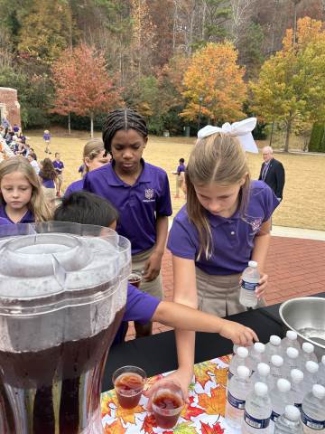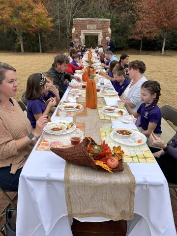 The annual Friendship Feast is a traditional culminating event for third-graders after completing a cross-curricular unit of study about the first Thanksgiving. Students read the biography "Squanto: Friend of the Pilgrims," made placemats in art, completed thankful writing in literacy classes and filmed a slideshow with Ms. McDermott. A poem titled "Thanksgiving at Plymouth" was recited by the students during the opening presentation.
