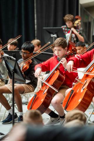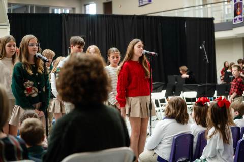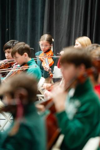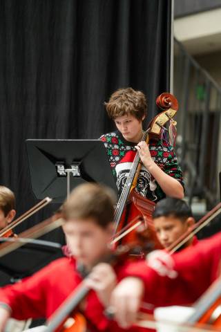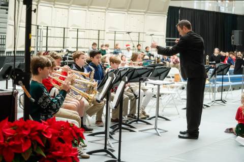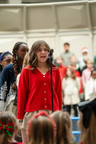 Pre-K to 8 students in Chorus, General Music, Band, Orchestra, Strings and Drama perform Christmas pieces for friends and family at the annual Pre-K to 8 Holiday Festival.