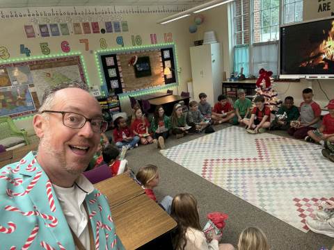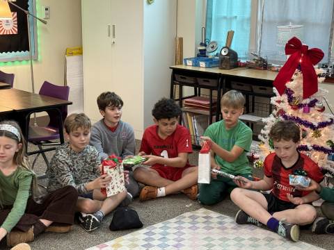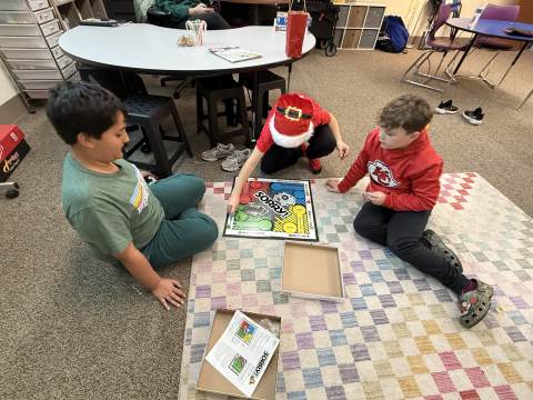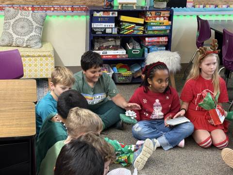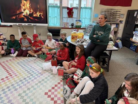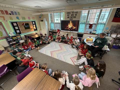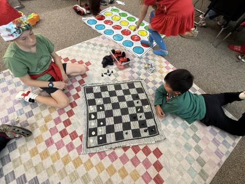 Fourth-graders celebrate a wonderfully successful semester by reading a story while rotating silly socks, playing board games, and enjoying a wonderful treat from their room moms. Merry Christmas and Happy Holidays from fourth grade!