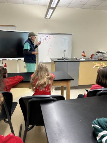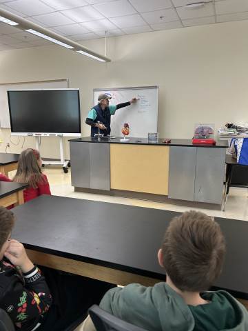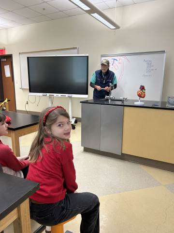 Third grade is studying the human body in literacy and science. We were very fortunate to have a guest speaker, Rosie's Papa, Dr. J. Michael Ware, a cardiologist with Advent Health here in Rome. He shared his knowledge of the heart and all the work he does to keep people healthy or fix them when they need it. He told us about the chambers of the heart and how those chambers pump the blood and take care of our bodies.