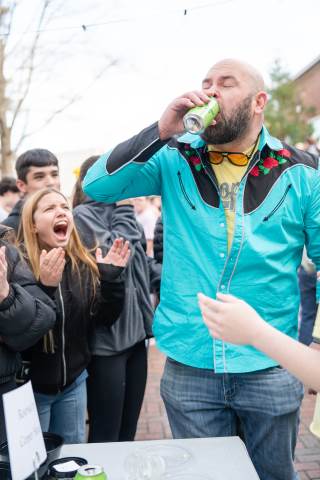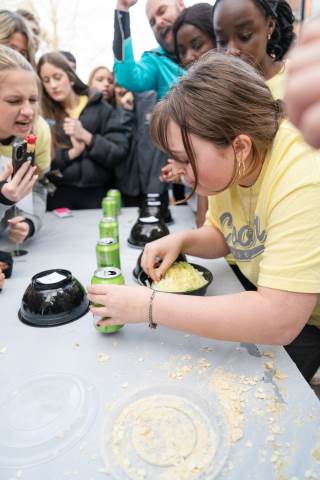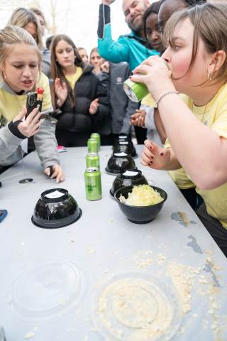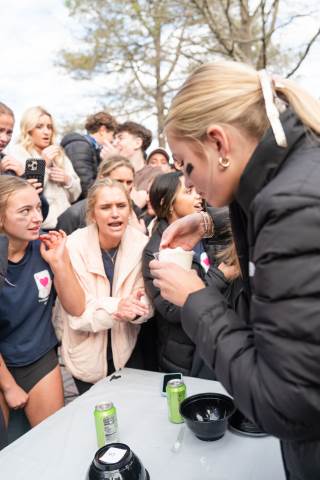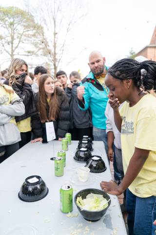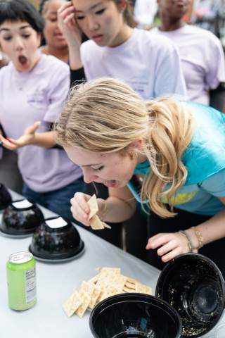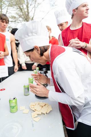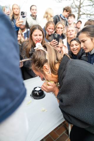House teams race to devour mystery concoctions during the annual RUMPUS eating contest, Fear Factor, with Neville House (boys) and Thornwood House (girls) coming out victorious.