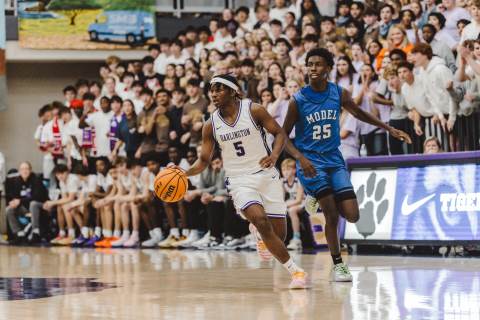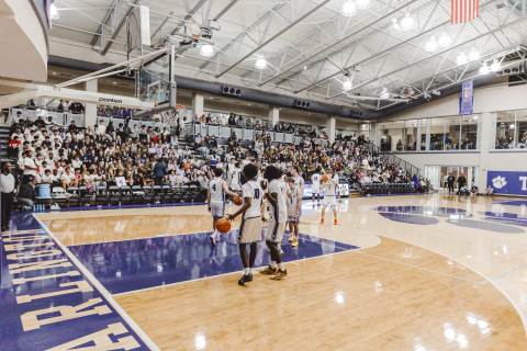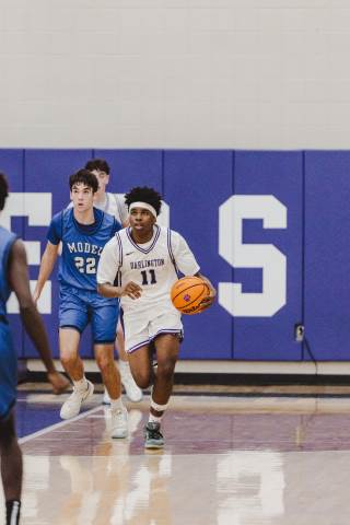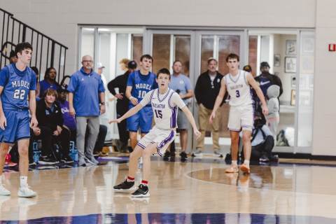The varsity boys' basketball team defeats Model 63-50 during RUMPUS weekend.