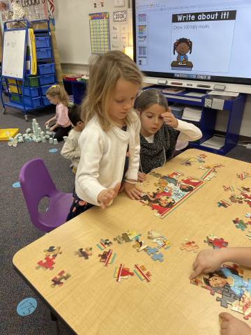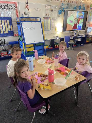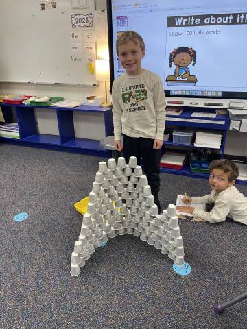 Kindergarten students enjoyed a day of fun-filled learning celebrating the 100th Day of School. From building structures with 100 cups to filling in a chart with numbers 1-100, it was a great day of exploration!