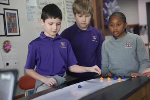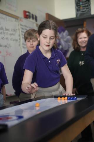Teachers surprised students in grades 3-5 with their annual "Snow Day" on Feb. 9 as part of the exploratory program. Centered around the Winter Olympics, this year's Snow Day included a STEM activity to build and race tin foil skiers, creating 3D snowflakes in art, Olympics trivia, and more. There was also a curling activity and lesson from guest speaker Dr. Dixon Freeman: a local physician and founding member of the Atlanta Curling Club who has served as the group’s representative to the Grand National Curling Club and USA Curling.
