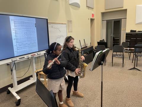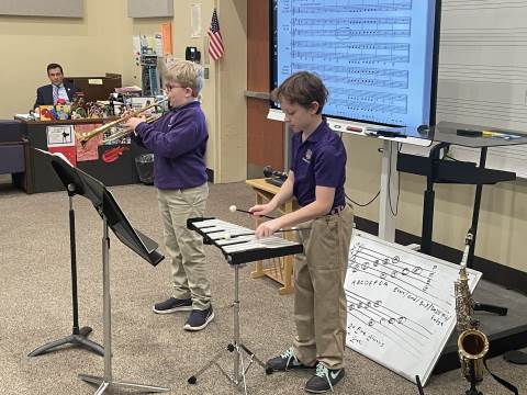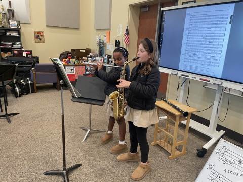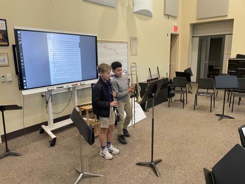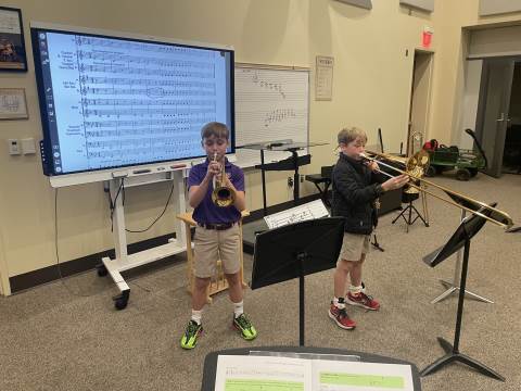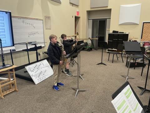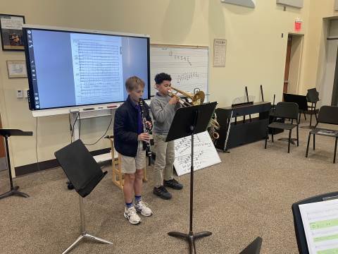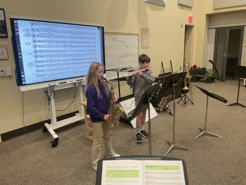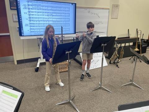 The 4th Grade Band has really enjoyed our winter season. During this time, the group has been able to "spread-out" and cover their first five notes more thoroughly. We have studied melodies that move by scale and others that move by leap. Every member of this young band has done a nice job taking responsibility for their own musicianship. Band members often play by themselves for the class, and they recently had their first experience playing duets. Each pair performed two-part harmony, with both players having a chance to perform both parts. This band is the newest addition to our Darlington band program, and they are off to a very successful start. We look forward to hearing many great sounds from these Talented Tigers!