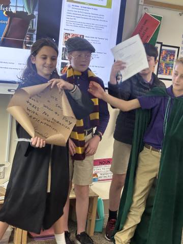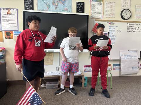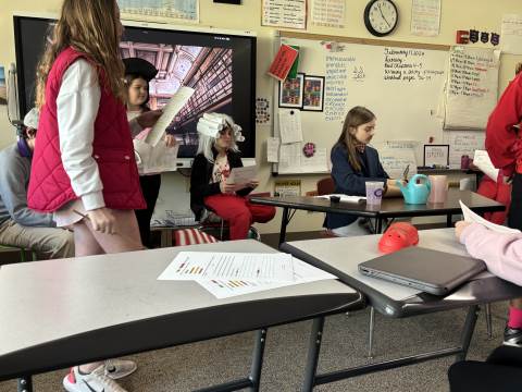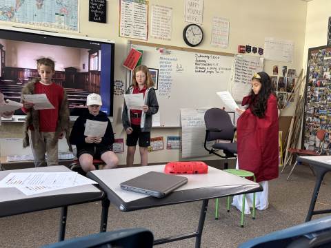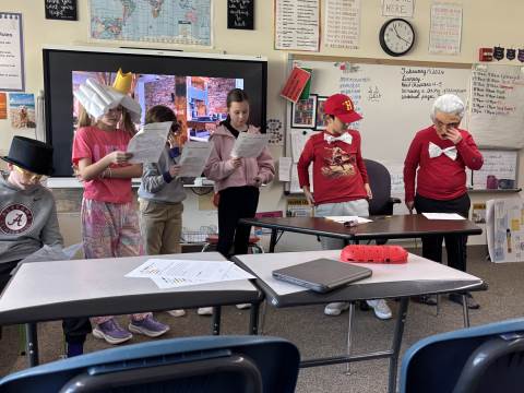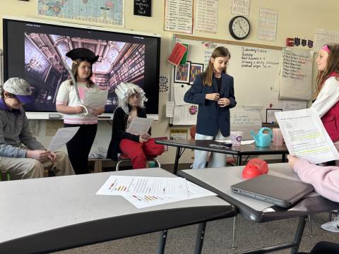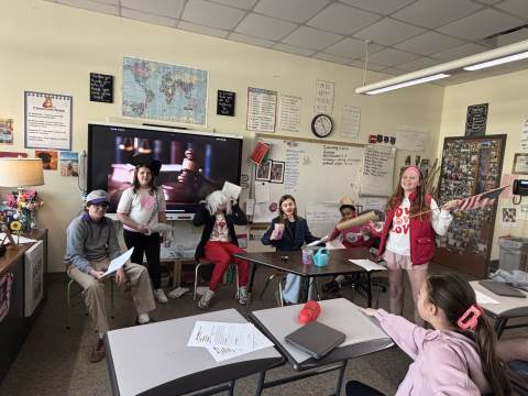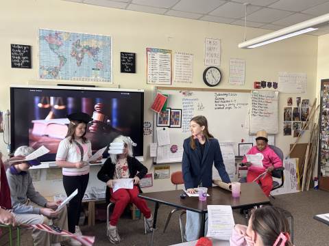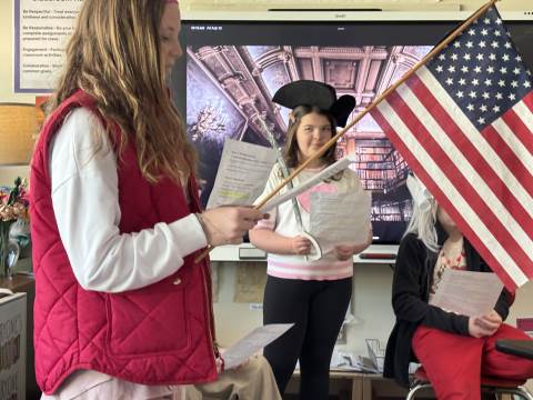 Fifth-graders reenact the signing of the Declaration of Independence, portraying the colonial leaders who courageously declared independence in 1776. This hands-on activity deepens students’ understanding of the historical significance, thoughtful debate, and bravery behind the birth of our nation.