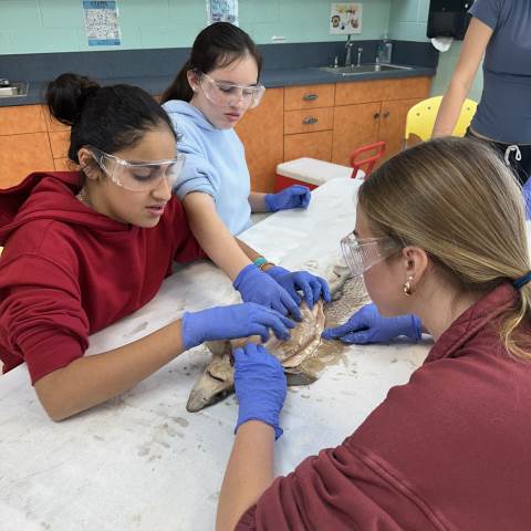 The seventh-grade students had an opportunity to travel back in time by visiting important historical places like Pamplin Park, Williamsburg, Jamestown, and Kitty Hawk to see the Wright Brothers National Memorial. They also got to walk through the Jockey's Ridge State Park. Finally, they got to dissect a shark at the Roanoke Aquarium.