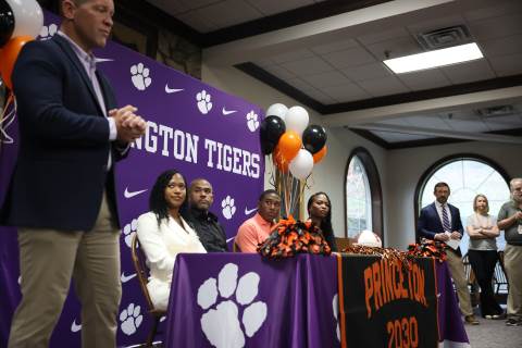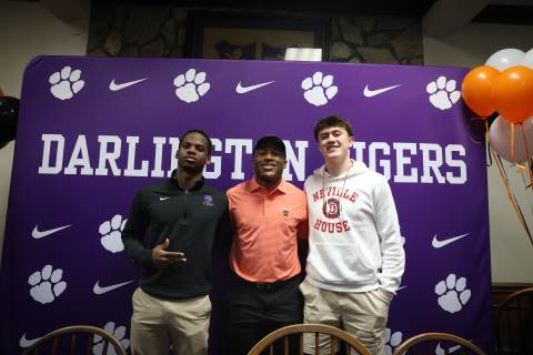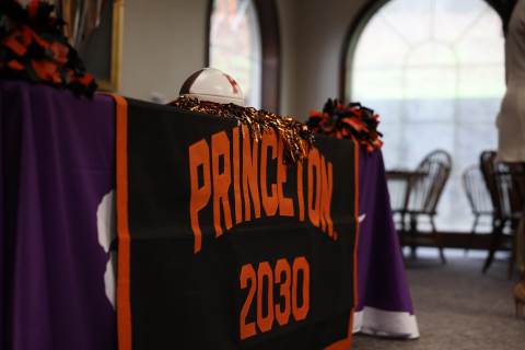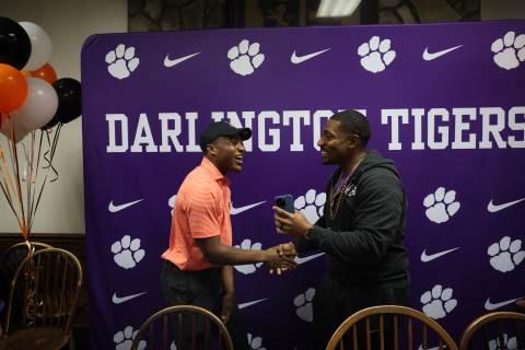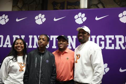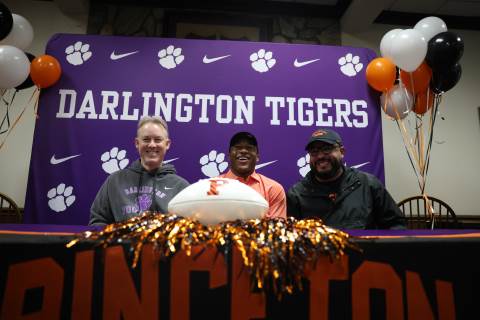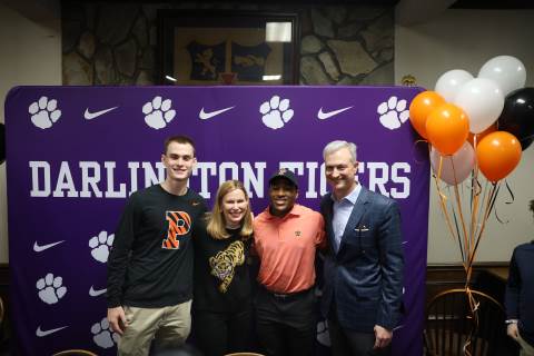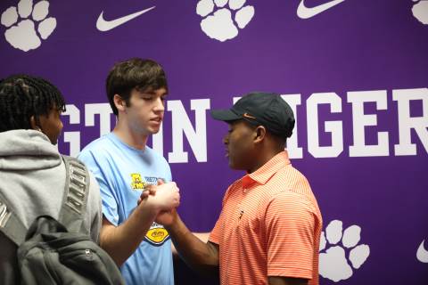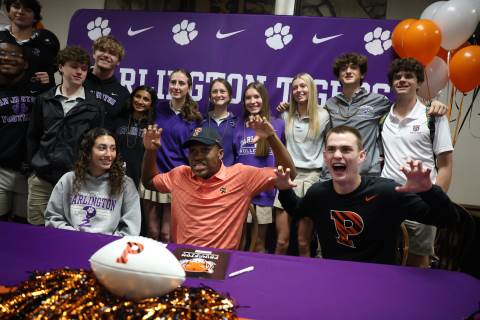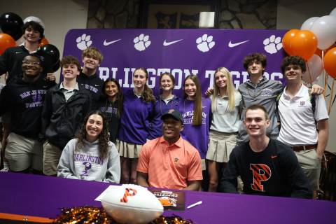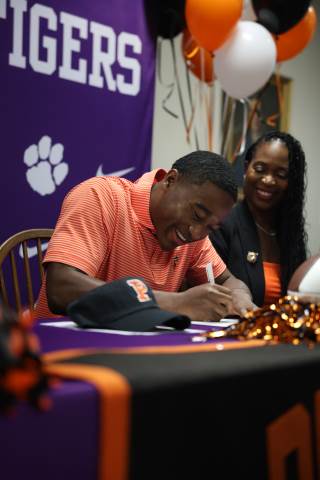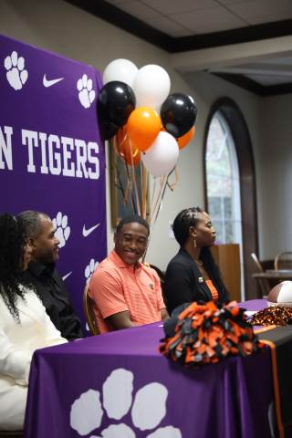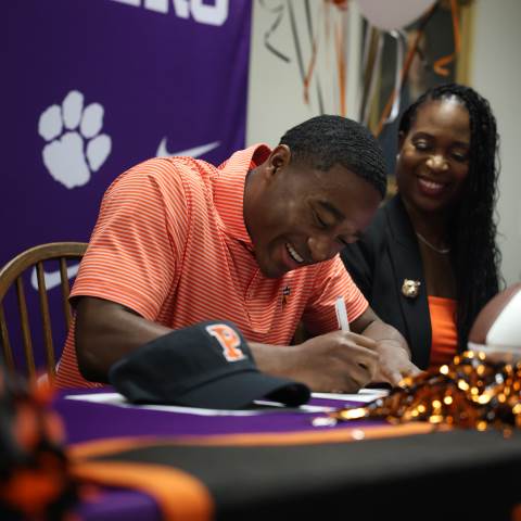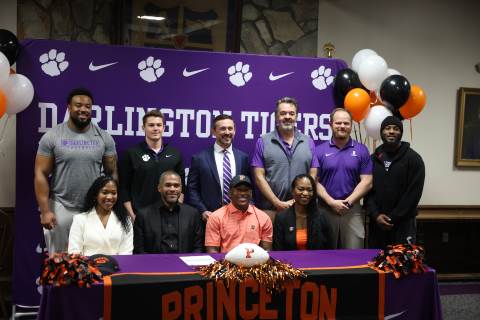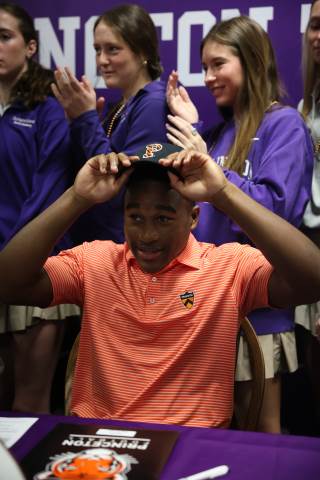 Senior Myles Twyman signs his letter of intent to play football at Princeton this fall.