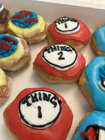 In celebration of Read Across America Day and Dr. Seuss' birthday, third-graders learned about his life and read some of his books. We also ate special Dr. Seuss donuts.