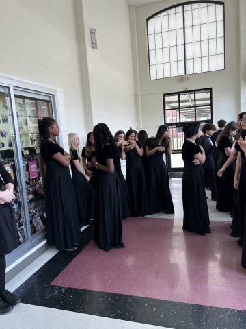 The choir performed two songs for this event: "Like a River in My Soul" by Tim Osiek and "The Word Was God" by Rosephanye Powell. These selections provided students the opportunity to showcase their growth as musicians, demonstrating tonal awareness and accurate pitch, rhythmic precision, and consistent vowel placement. Their thoughtful interpretation of the repertoire, combined with carefully shaped dynamics, brought musicality and expressive depth to their performance.