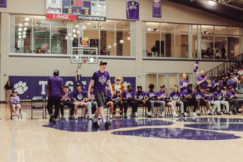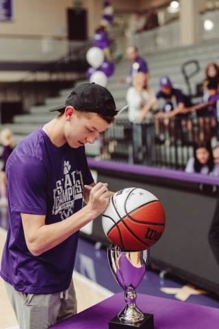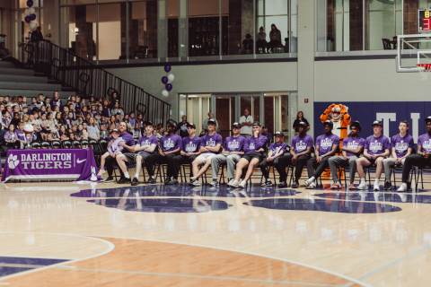 The Darlington Community came together to celebrate a historic milestone — honoring the varsity boys’ basketball team after capturing the GHSA A-AAA Private State Championship on March 11, the first in program history. Head coach Nathan West shared a heartfelt address before the community premiered a documentary created by junior Brooke Temple (featured in this gallery). The event concluded with players and coaches cutting down the net and signing the ball, capping off an unforgettable championship season.