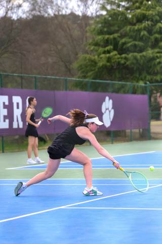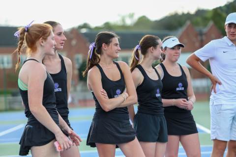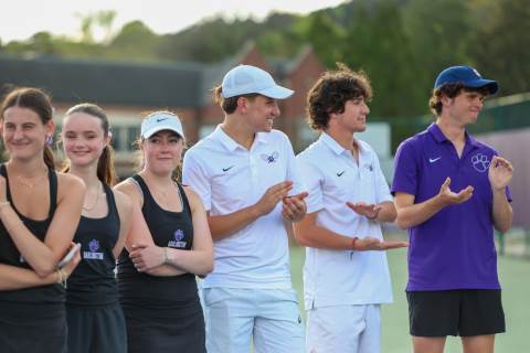 The varsity tennis team competes against Temple on Senior Night.