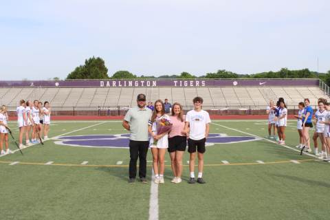 The varsity girls' lacrosse team celebrates their seniors on Senior Night.