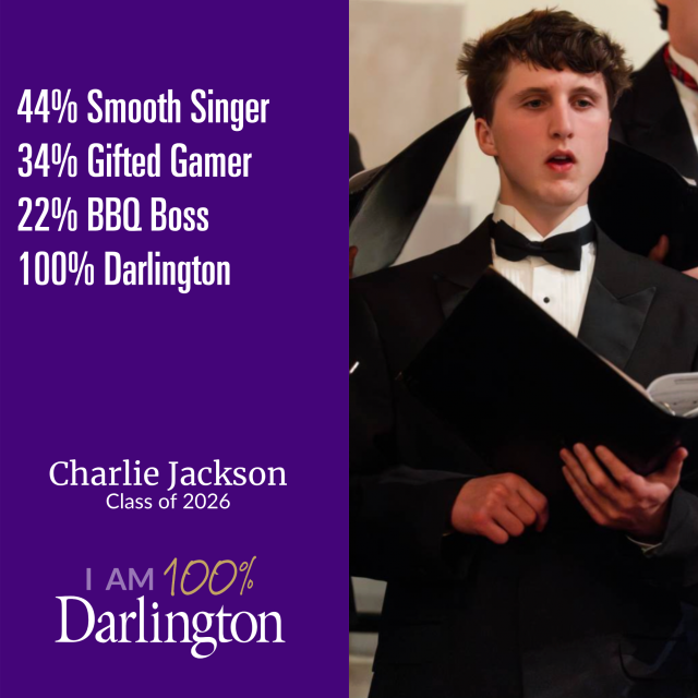 A Darlington student is made up of many things. None of which is average. We help our students develop their interests, passions and pursuits, because we believe every individual has something to contribute. We also believe that only when you're 100% you, are you 100% Darlington.