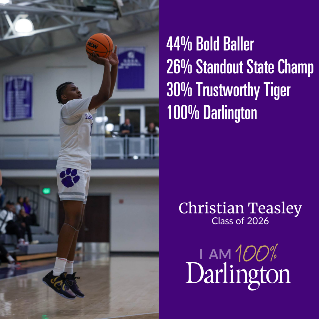 A Darlington student is made up of many things. None of which is average. We help our students develop their interests, passions and pursuits, because we believe every individual has something to contribute. We also believe that only when you're 100% you, are you 100% Darlington.