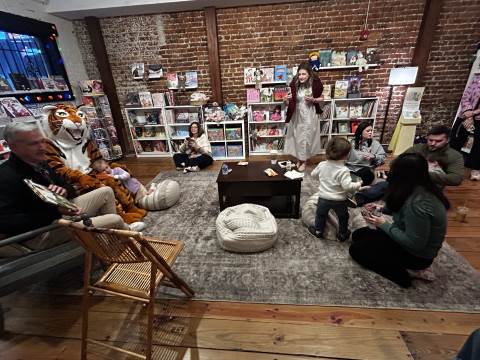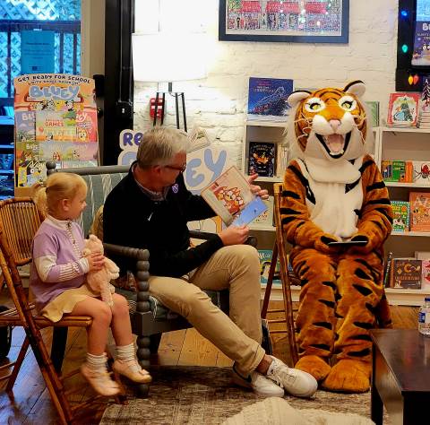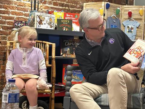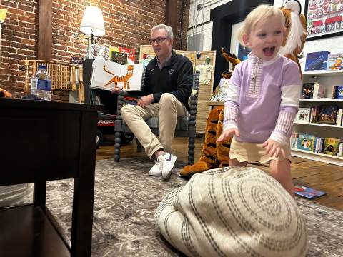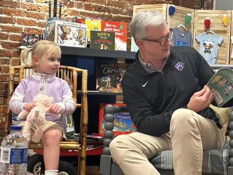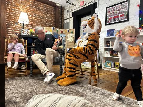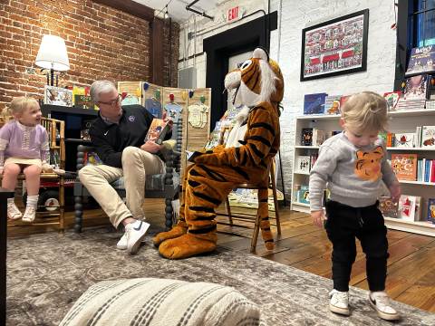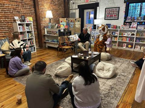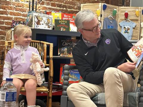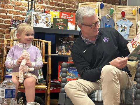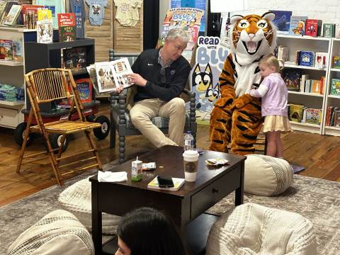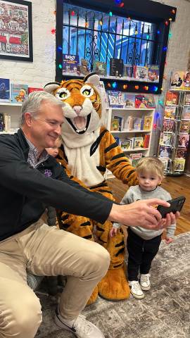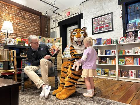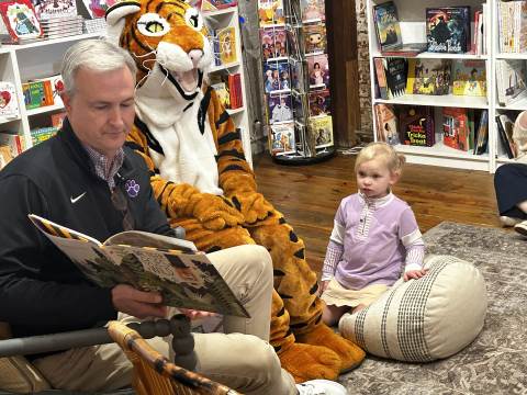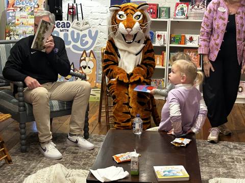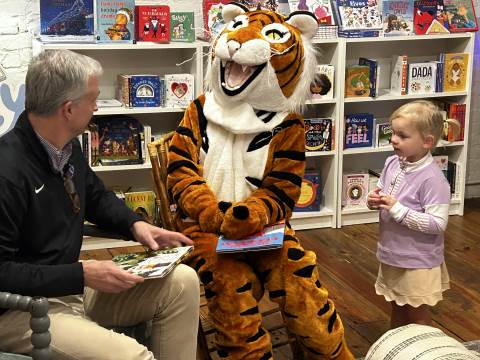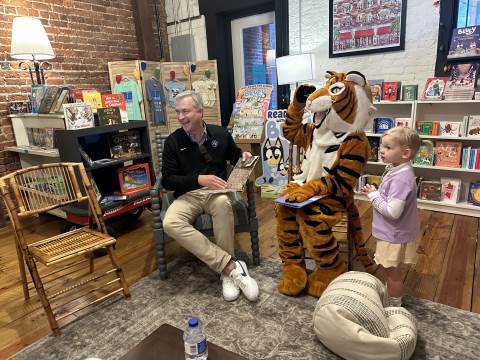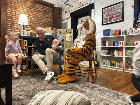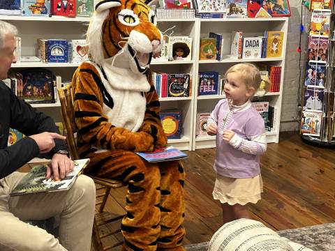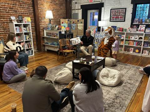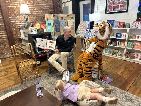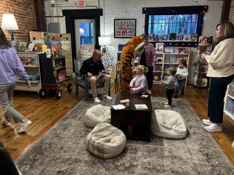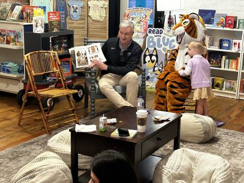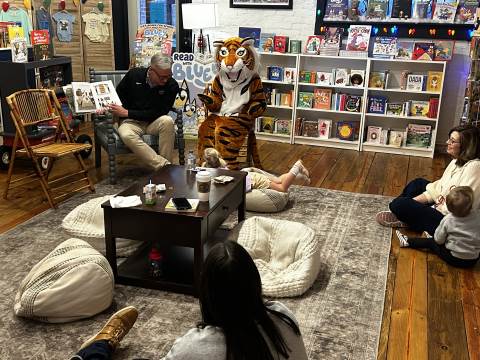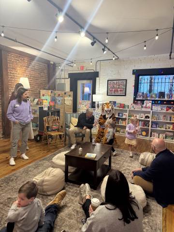 The Advancement Office hosted a Darlington Tiny Tigers Storytime at River & Hill Books in Downtown Rome. Guests enjoyed storytime with Head of School Brent Bell, visited with the Darlington Tiger, and connected with fellow Darlington alumni, parents, and grandparents. Thank you to current parent and alumna Claire McWhorter (’08, LD ’15), owner of River & Hill Books, for hosting us!
