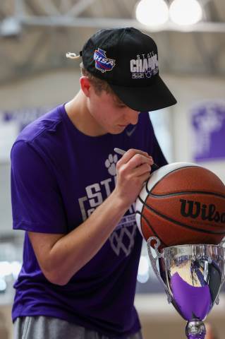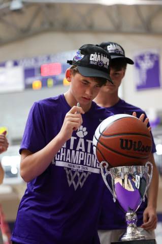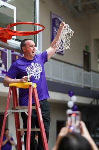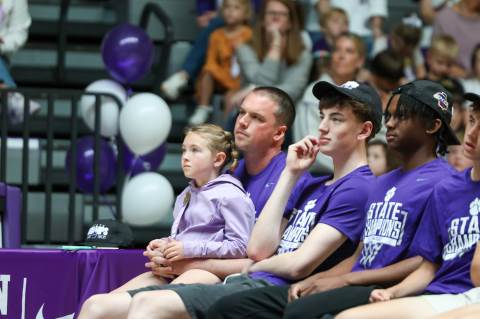 The Darlington Community gathers to celebrate the varsity boys' basketball team after the team brought home the GHSA A-AAA Private Boys State Championship on March 11, the first state championship in school history for this program. Head coach Nathan West gave a heartfelt address and everyone watched a documentary created by junior Brooke Temple (shared in this gallery) before the players and coaches cut the net.