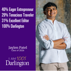 My Senior Ventures project, “The Creative Athlete,” focuses on expanding and integrating the fine arts and athletic groups at Darlington. As someone who has been involved in both the fine arts and athletics and has seen the positive impact that participating in both activities can have on students, I feel it is very important for students' growth to participate in both.