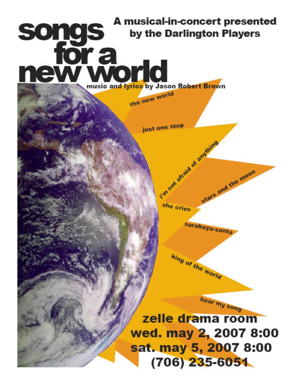 Visitors can hear “Songs for a New World” May 2 and 5. The production features a variety of musical numbers performed by Caroline Baker, Ben Cantrell, Katherine Eid, Garrett Henderson, Ross Langley, Elexene Mattingly, Emily Morrow, Caitlin Murray, Logan O’Riley and Ashley Udell.