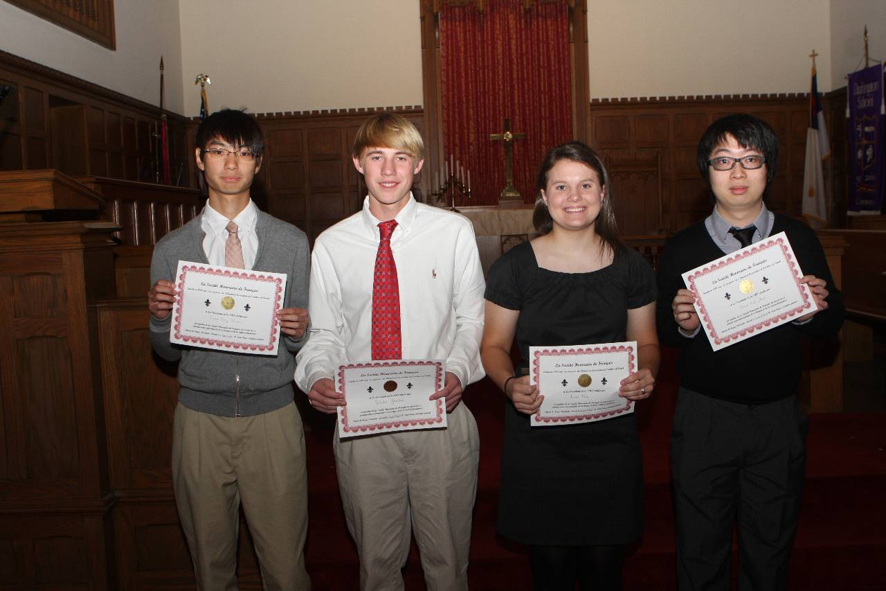 Société Honoraire de Français, students must be enrolled in the fourth semester of French or higher; be a sophomore, junior or senior; have maintained an A average in French during the semester of selection, as well as an averaged cumulative grade of A for all work awarded secondary school credit; and have maintained a B average or higher in all other subjects during the semester of selection, as well as an averaged cumulative grade of B in all other subjects awarded secondary school credit (French not included). Inductees included Shun Hei Chiu, Anna Fox, Blake Gardner and Tsan Ting Shen.