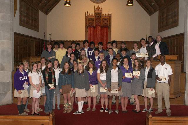Sociedad Honoraria Nacional, students must be enrolled in their third year or more of Spanish and have a 90 overall average in Spanish III, an 85 in Spanish III Honors, or an 80 in Spanish IV/AP Spanish. Inductees included Erin Ables, Dani Baker, Emmy Barron, Madde Briggs, Chad Collins, Hunter Davis, Ben Davidson, Brian Davidson, Matt Duckworth, Allen Edge, Tyshawn Good, Owen Greeson, Christopher Griffin, Emily Grizzard, Tricia Groover, Khadijah Haaris, Haley Harris, Ali Harton, Margaret Hjort, Chandler Holcombe, Lucas Jennings, Jacquelyn Johnson, Taylor Josey, Jack Kelly, Cliff Knight, Cris Lowe, Zachary Martin, Alexandra Murray, Lauren O’Neal, Molly Safigan, Alissa Schlosberg, Anna Shea, Maggie Sparks, Scarlett Sumner, Anna Swafford, Will Thoms, Saket Tiwari, Jessie Tudor, Katie Tullos, Lex Vick, Sam Watters and Diego Wohlers.