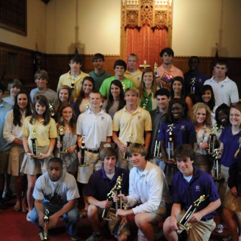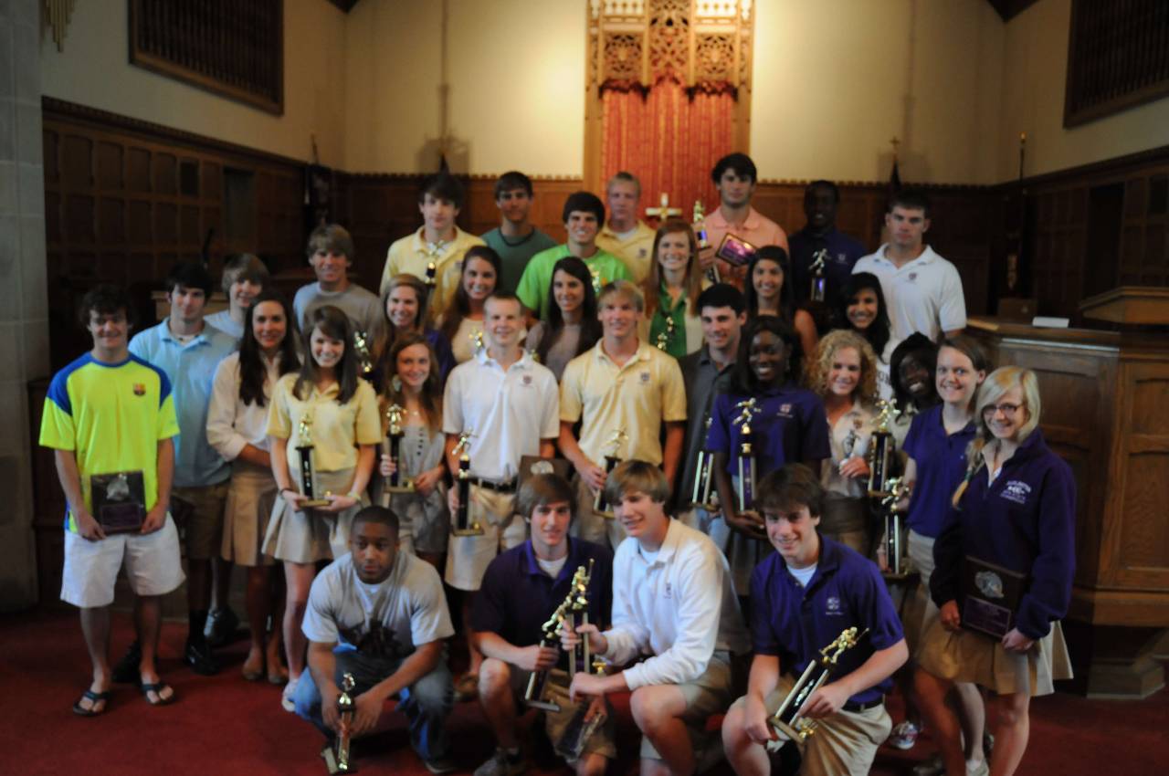 Outstanding athletes in baseball, lacrosse, soccer, tennis, and track and field were recognized at the Spring Sports Assembly Monday, May 2, in Morris Chapel. Golf awards were presented the following week.