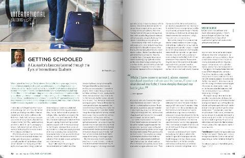 The article, titled "Getting Schooled," was written by Peter Morgan, the outgoing director of college counseling at The Northwest School in Seattle. The author talks about the challenges that come with the college search and subsequent application process, and how it can be guided by the cultural norms of an international student's home country.